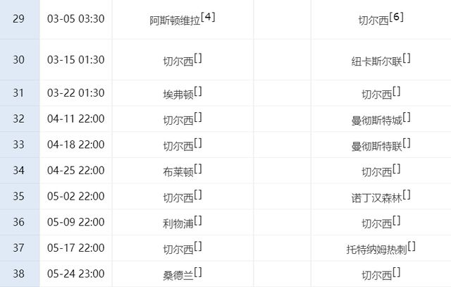至于切尔西,他们的赛程更加艰难,本轮比赛,切尔西就将做客前四的维拉,此役胜负难料。之后切尔西的对手还包括埃弗顿、曼城、曼联和利物浦,此外他们也要踢欧冠,无论切尔西还是利物浦,都有可能在赛季最后时刻翻车。一旦无缘前五,除非他们在欧冠夺冠,否则就将无缘下赛季欧冠!